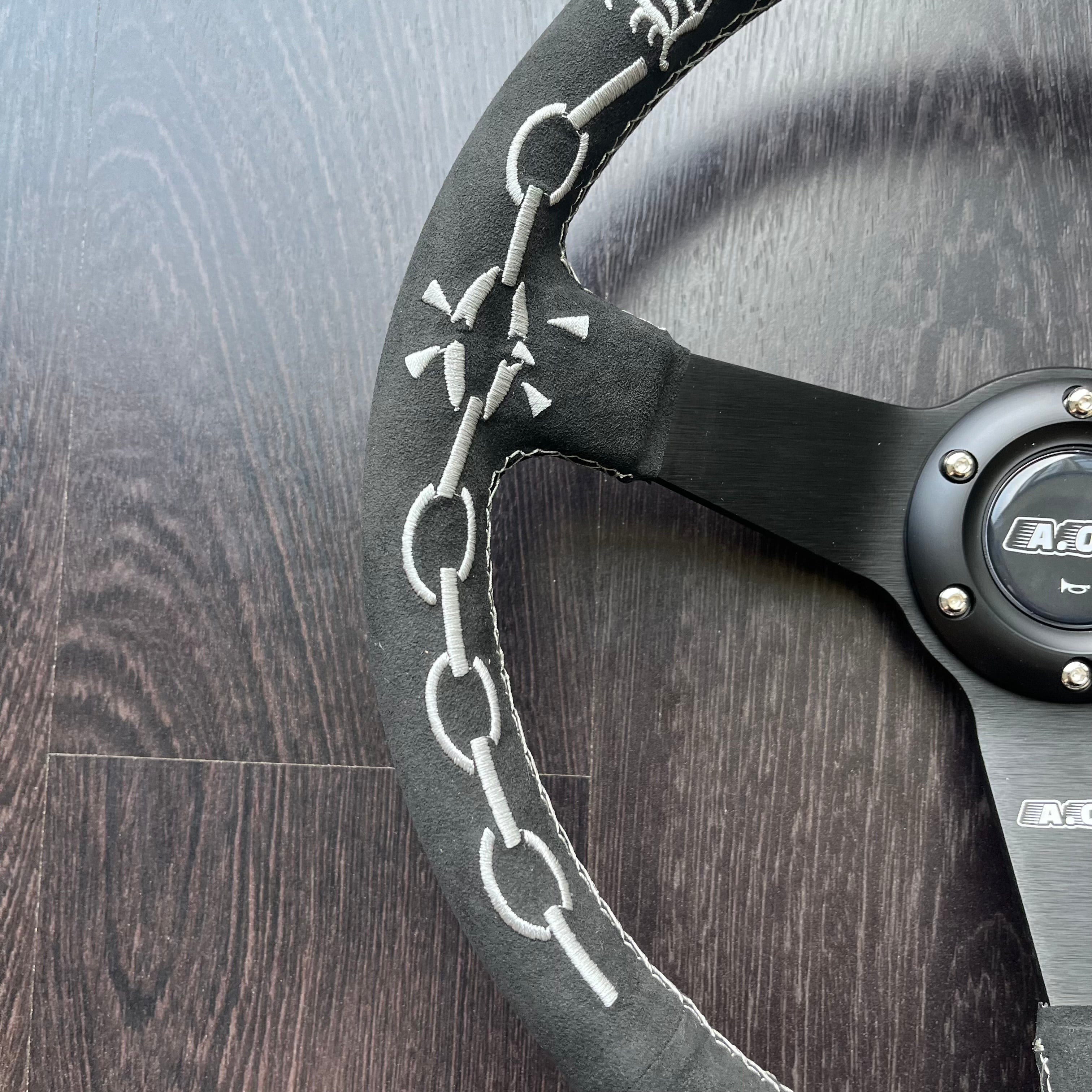 TK #1 。Steering Wheel 。Black Stitching 。Perforated Leather