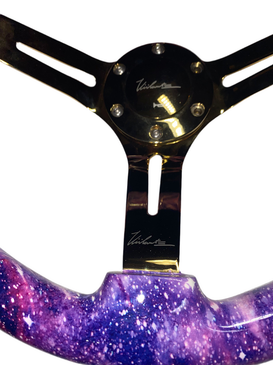VIILANTE 3" DEEP DISH 6-HOLE STEERING WHEEL *GALAXY* GOLD CHROME SPOKE